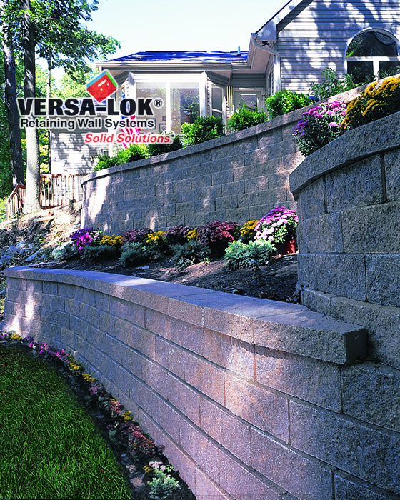 Los bloques de VERSA-LOK® se instalan de forma económica ya que no requieren mortero ni cimientos. Además, se usan unidades estándar para construir muros rectos, esquinas, curvas y escalones.